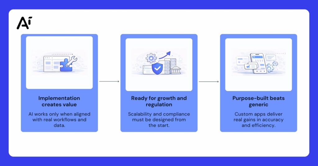 The actual value of AI lies in how well it is implemented. Custom AI app development enables healthcare organizations to align technology with their specific workflows, data environments, and patient needs.